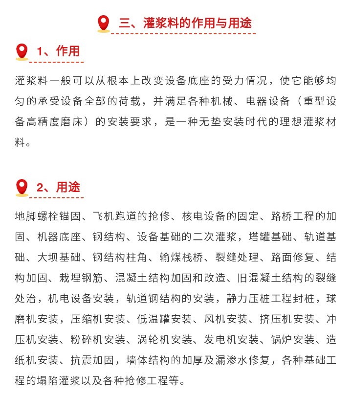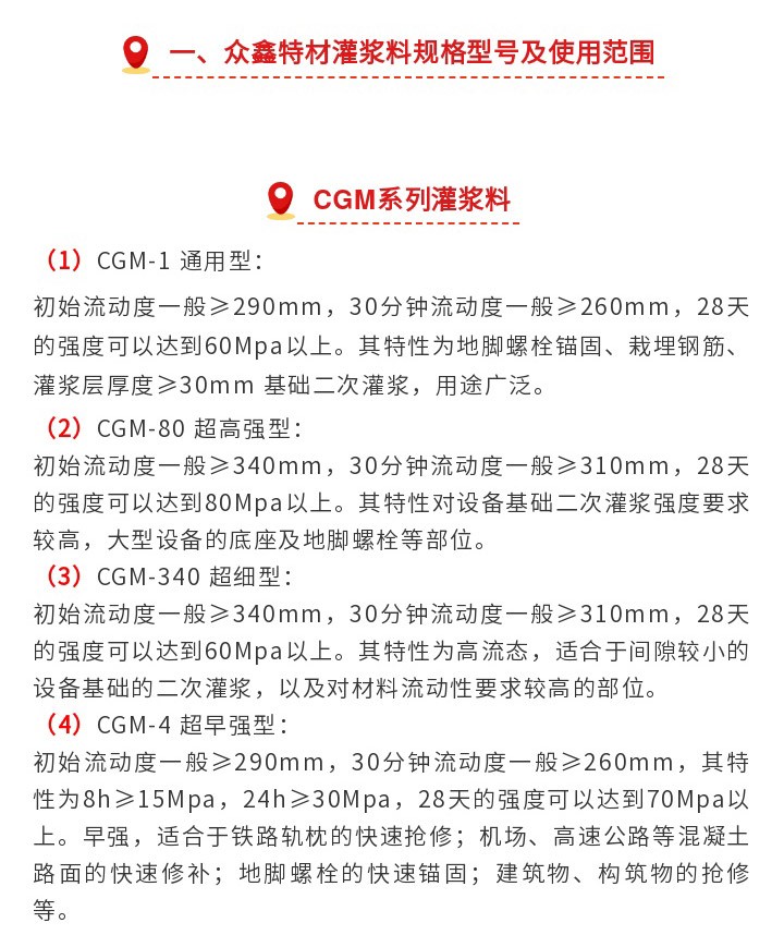 大連志恒眾鑫專業生產銷售風電灌漿料,強度80Mpa,100Mpa,110Mpa, 120Mpa適用二次灌漿,設備基礎灌漿,我們是大連灌漿料廠家,長春灌漿料廠家,有環氧砂漿,套筒灌漿料,PC座漿料、自流平砂漿等50多種產品,可滿足您不同需求,